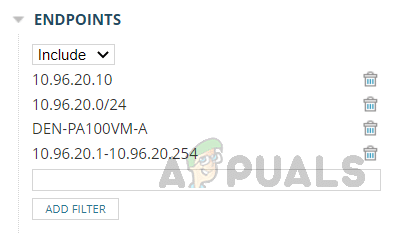 يمكن استخدام هذا الخيار لتضمين أو استبعاد حركة المرور من نقاط نهاية معينة. يمكننا استخدام عنوان IP، واسم المضيف، والشبكة الفرعية، ونطاق IP، وتدوين CIDR لتصفية حركة المرور في هذا الخيار.