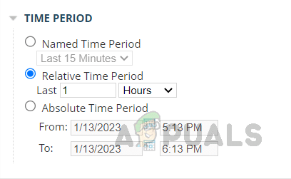 يتيح خيار الفترة الزمنية (Time Period) تخصيص النافذة الزمنية التي يتم تحليل حركة مرور الشبكة خلالها. تتوفر ثلاثة خيارات للاختيار: الفترة الزمنية المسماة (Named Time Period)، والفترة الزمنية النسبية (Relative Time Period)، والفترة الزمنية المطلقة (Absolute Time Period).