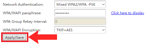 - أخيرًا، انقر على تطبيق/حفظ لتثبيت SSID الجديد لشبكة الواي فاي الخاصة بك.