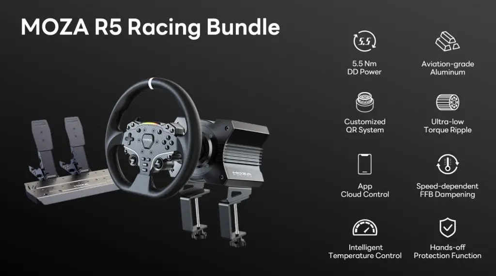 تُعد MOZA قوة صاعدة حديثة وسريعة النمو في سوق محاكاة السباقات (sim racing)، وتضع نفسها كمنافس قوي لـ Fanatec. تتنافس حزمة MOZA R5 مباشرة مع حزمة Fanatec CSL DD، وتُعد بديلاً مثيرًا للإعجاب لكليهما ولـ G29.