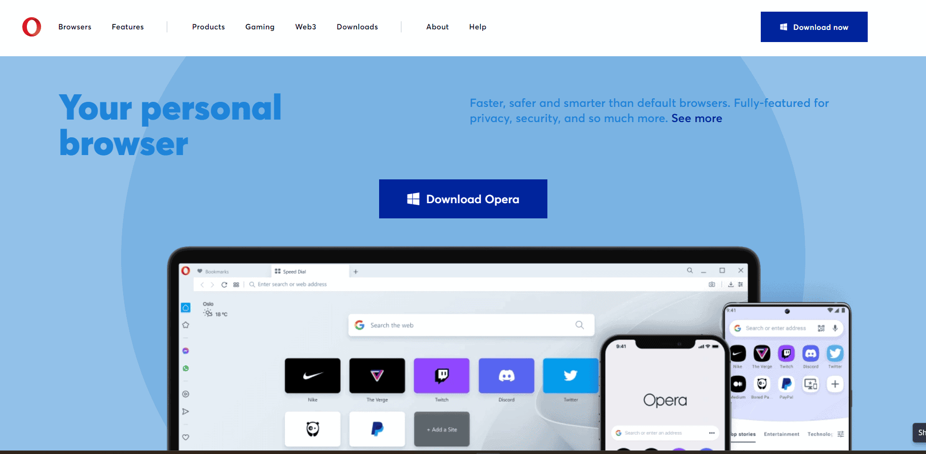 يُعد متصفح Opera لاعبًا بارزًا في صناعة المتصفحات، حيث يوفر ميزات تصفح لا تشوبها شائبة. لقد حصدت المنصة ثقة أكثر من 350 مليون مستخدم وتستمر في النمو. مع أكثر من عقدين من الخبرة، كن مطمئنًا أنك في أيدٍ أمينة. يمكنك بسهولة تنزيل Opera على جهاز Android الخاص بك ثم عرضه على شاشتك باستخدام طريقة انعكاس الشاشة (screencasting).