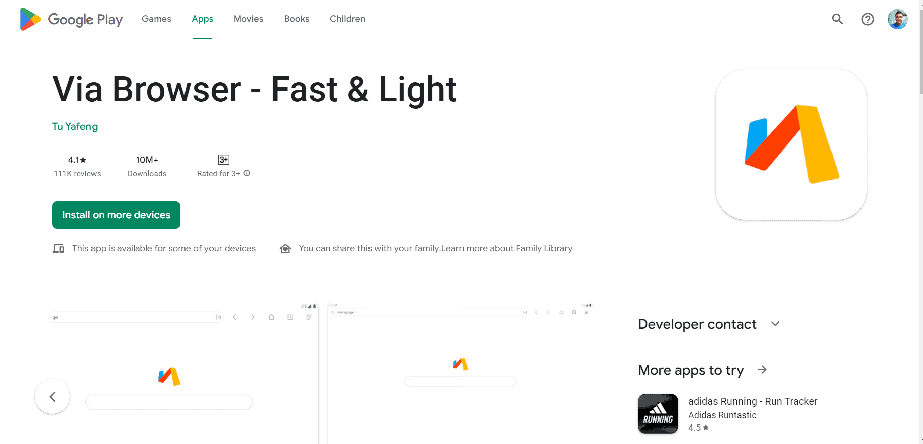 يُعد Via أحد أصغر وأفضل المتصفحات لمشاهدة الفيديوهات، حيث يبلغ حجمه 1.6 ميجابايت فقط. ومع ذلك، فإن حجمه لا يعكس قوته. هذا المتصفح ليس فقط قابلًا للتخصيص بدرجة عالية ولكنه أيضًا سريع بشكل لا يصدق. يمكنك الحصول بسهولة على متصفح الويب المثير للإعجاب هذا من Google Play Store وبث شاشة هاتفك المحمول إلى جهازك.