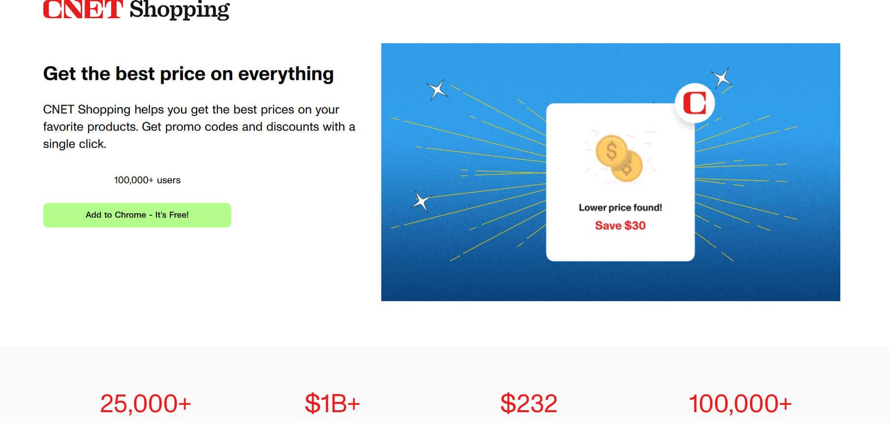 CNET للتسوق، المعروف سابقًا باسم Invisible Hand، يعمل بهدوء في الخلفية أثناء تصفحك ويحدد أسعارًا أفضل من أكثر من 25,000 بائع تجزئة. إذا كان هناك منتج على Amazon، فسيعرض لك تكلفته على مواقع أخرى، بما في ذلك الشحن، ويمكنه أيضًا تتبع الرحلات الجوية والفنادق. يمكنك إنشاء قائمة أمنيات، وتحديد سعرك المستهدف، وتلقي بريد إلكتروني عندما ينخفض سعر المنتج إلى هذا المستوى. علاوة على ذلك، يقوم تلقائيًا بجلب رموز العروض الترويجية والخصومات حتى لا تضطر إلى البحث عنها بنفسك.