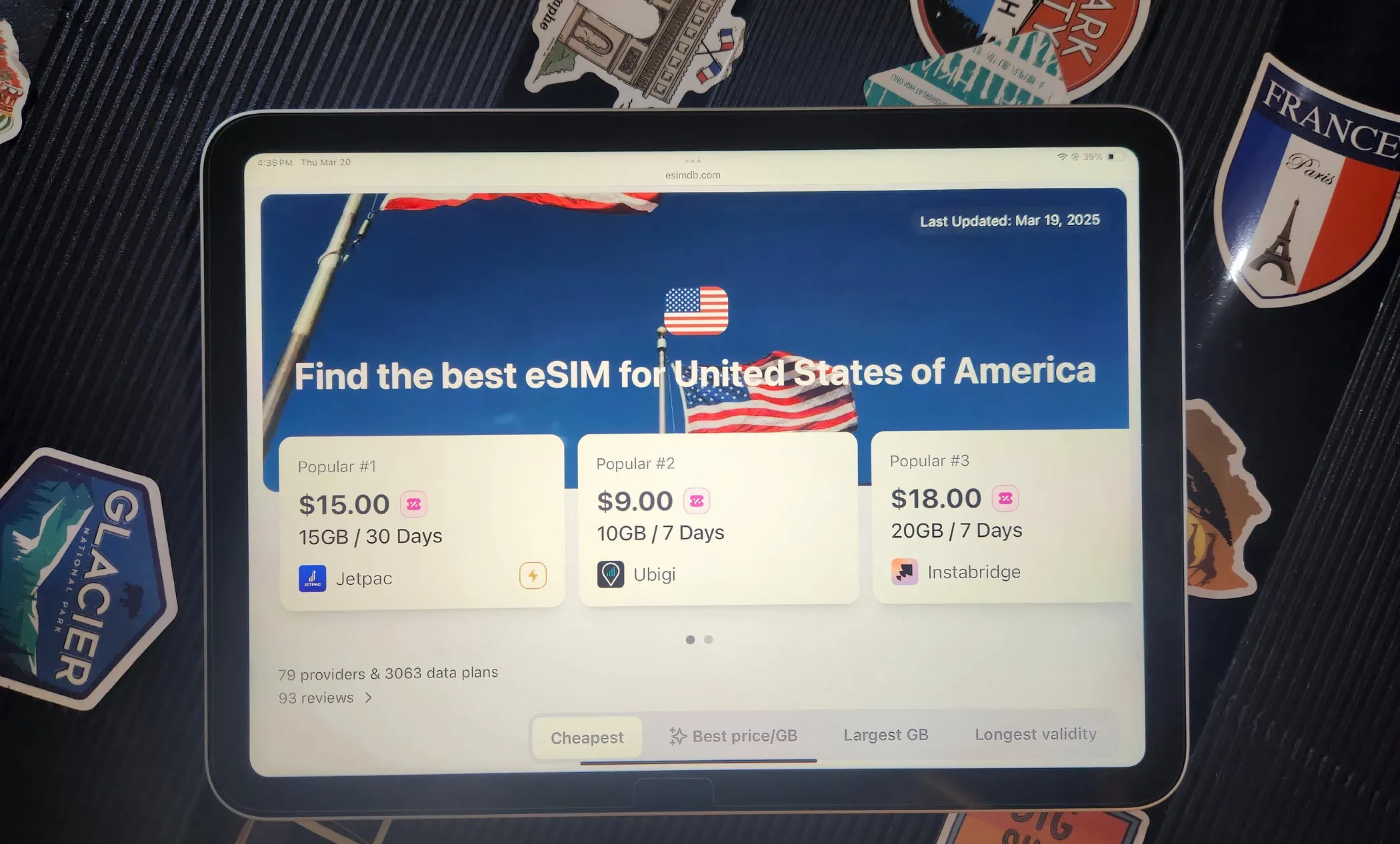 يُعد موقع eSIMDB وجهتي الأولى عند السفر إلى أماكن جديدة. وكما يوحي الاسم، فهو قاعدة بيانات شاملة لأكثر من 70 مزود eSIM، تضم أكثر من 70,000 باقة بيانات. يعتبر هذا الموقع مرجعاً أساسياً لمقارنة باقات بيانات eSIM، خاصةً مع تزايد شعبية شرائح eSIM.
