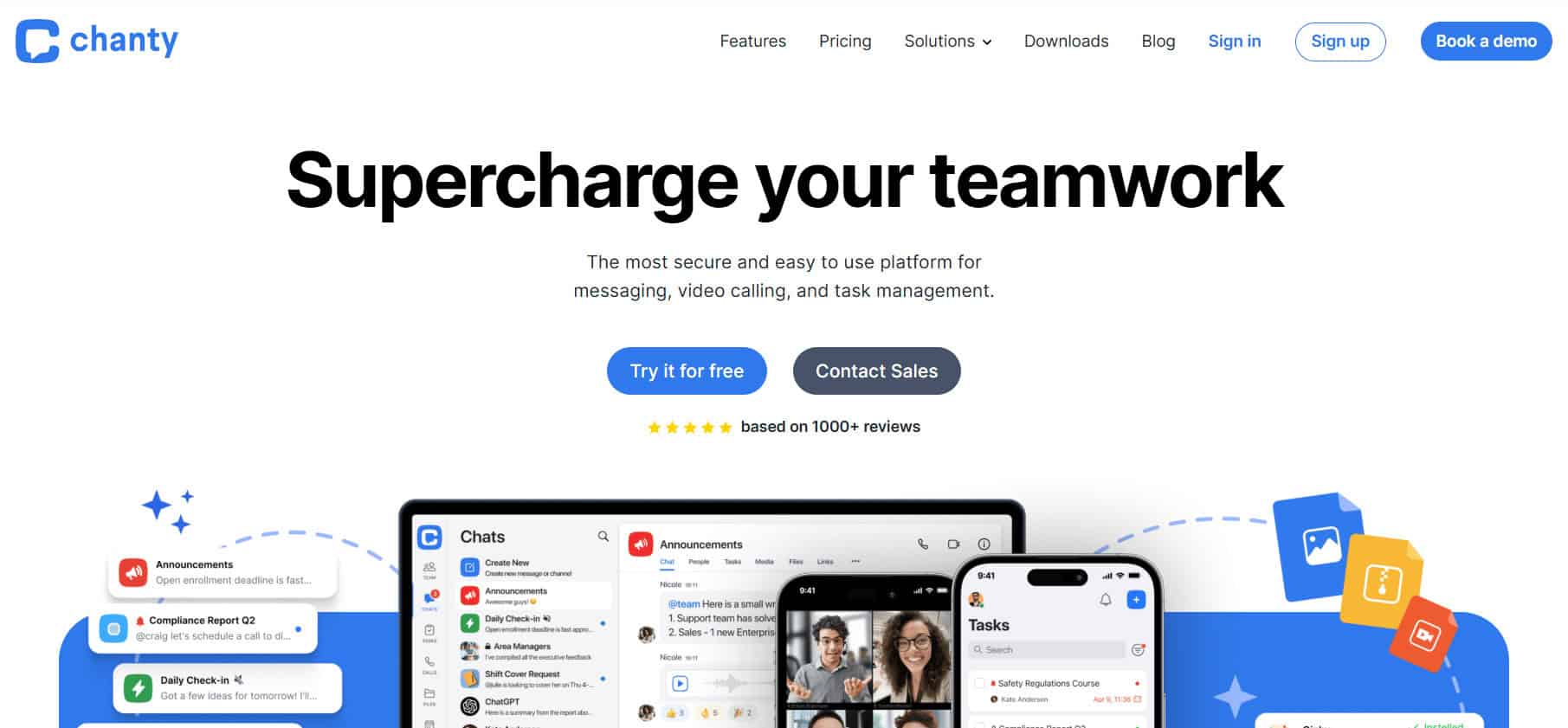 يُعد Chanty مثاليًا إذا كان فريقك يحب الحفاظ على الأمور بسيطة ومركزة على المهام. تضع هذه المنصة العمل الجماعي في صميم اهتماماتها. كيف؟ من خلال دمج المراسلة مع إدارة المهام. تُبرز واجهته المدعومة بالذكاء الاصطناعي جميع المهام، بينما يحتفظ دفتر الفريق بالرسائل والملفات والأنشطة في مكان واحد. كما يدعم الدردشات الخاصة والجماعية، والمكالمات الصوتية والمرئية، ويتصل بتطبيقات الطرف الثالث الشائعة للحفاظ على سير عملك.