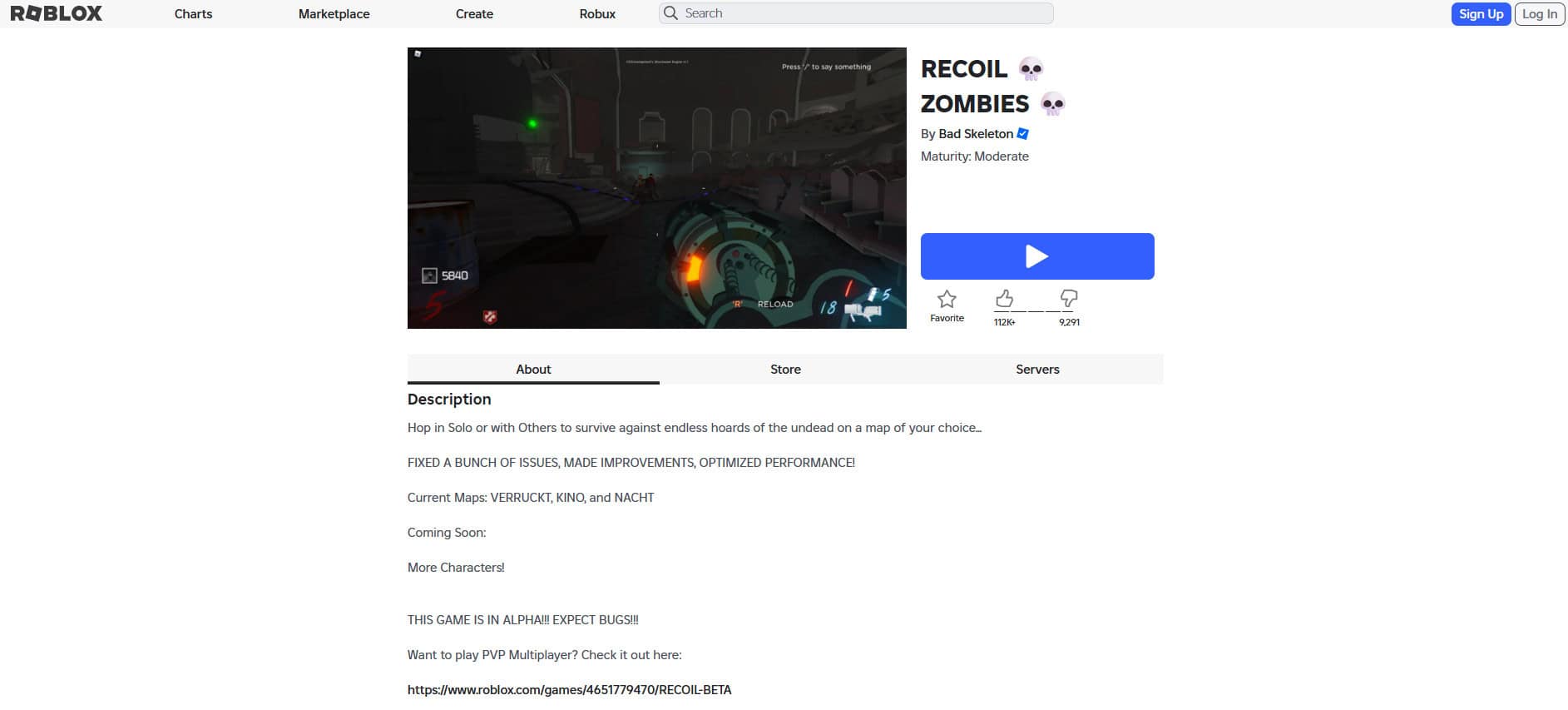 تحول RECOIL ZOMBIES خرائط COD للزومبي الأسطورية مثل Verruckt و Kino إلى شكل Roblox. دافع عن موقعك، واجمع النقاط، وأعد بناء المتاريس بينما تتنافس أو تتعاون مع الآخرين. سواء كنت تسعى وراء الحنين إلى الماضي أو تلعب من أجل المتعة فقط، فهذه تجربة إطلاق نار مصقولة.