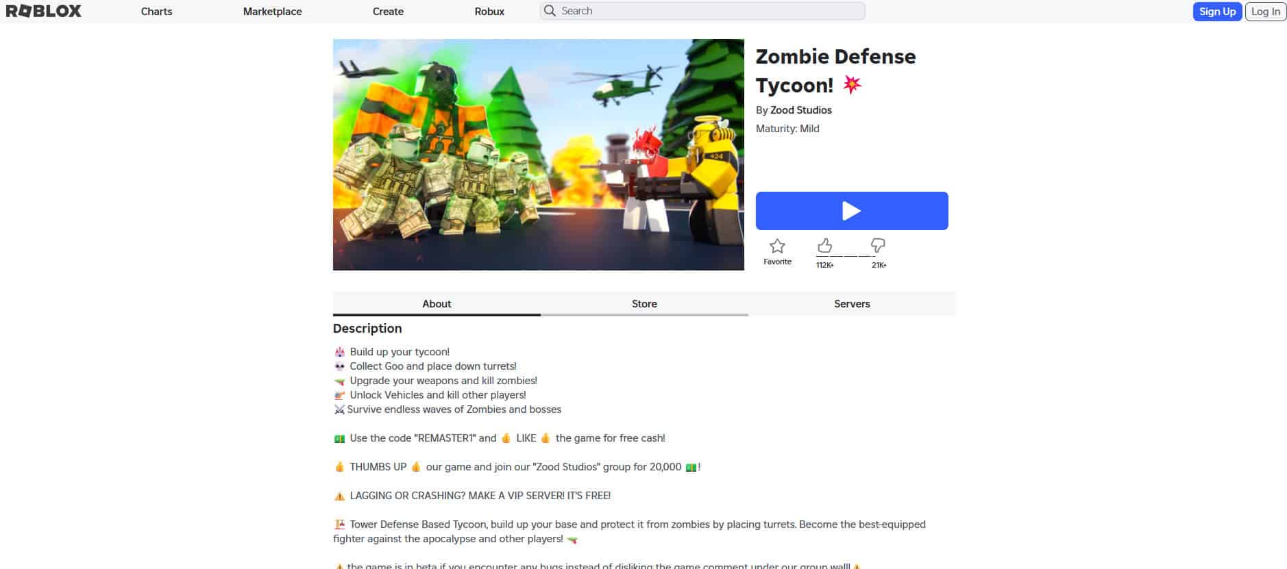بعد تحديثه الكبير، أصبح Survival Zombie Tycoon أفضل من أي وقت مضى. خلال النهار، اجمع الموارد وقم بترقية قاعدتك. وفي الليل، صد جحافل الزومبي بترسانتك من الأسلحة، معظمها سيوف ومعدات قتال يدوي. سواء كنت تلعب بمفردك أو مع الأصدقاء، إنها تجربة بقاء قوية، مما يجعله أحد أفضل ألعاب الزومبي على Roblox.