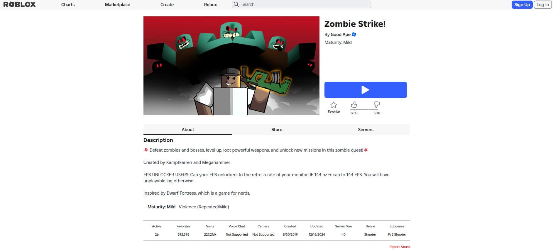تدور أحداث Zombie Strike في خريطة مفتوحة واسعة، وتمزج بين إطلاق النار وعناصر ألعاب تقمص الأدوار (RPG). مستوحاة من ألعاب مثل Counter-Strike، تتيح للاعبين استخدام سلاحين في نفس الوقت، وإكمال المهام، واستخدام عتاد مثل القنابل اليدوية والجرعات. سواء كنت تلعب بمفردك أو ضمن فرقة، فهي خيار رائع كواحدة من أفضل ألعاب الزومبي على Roblox.