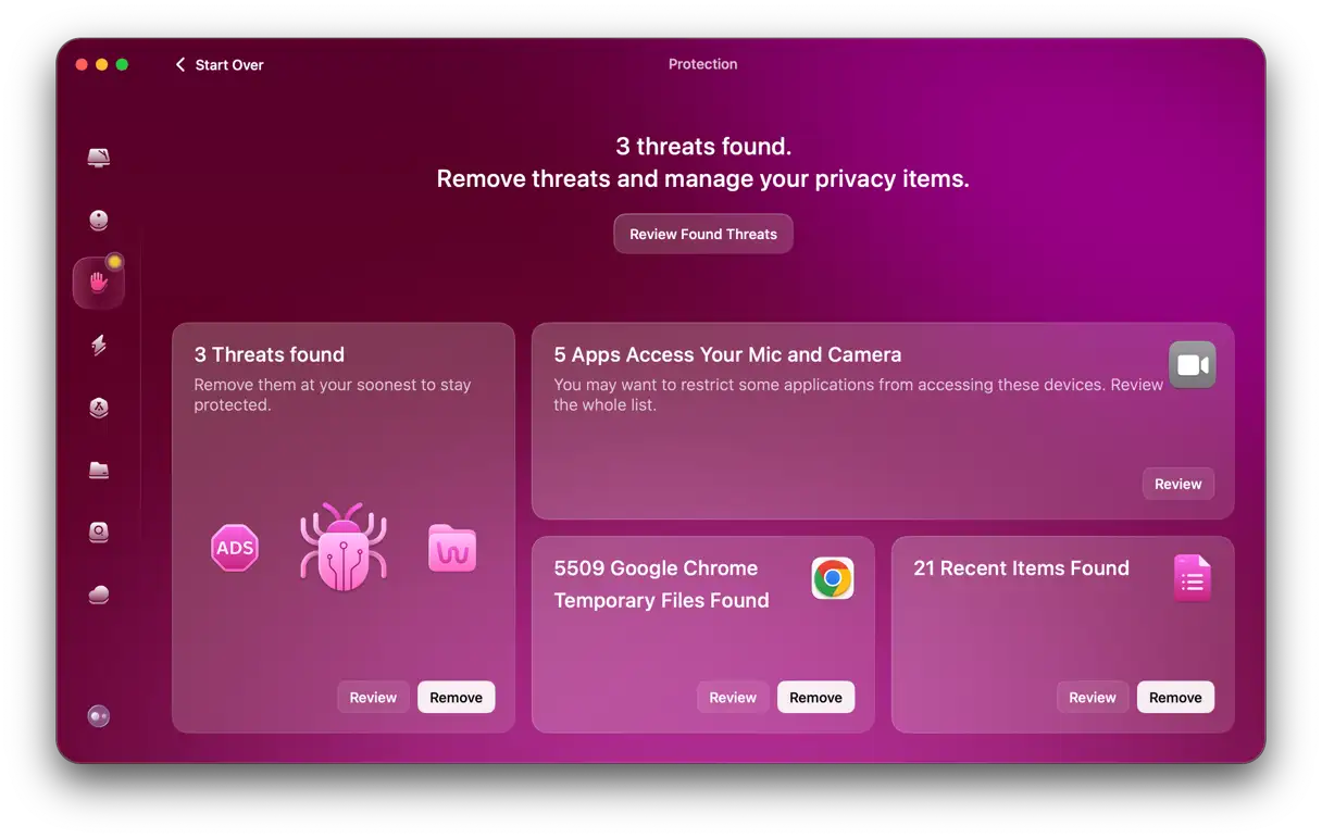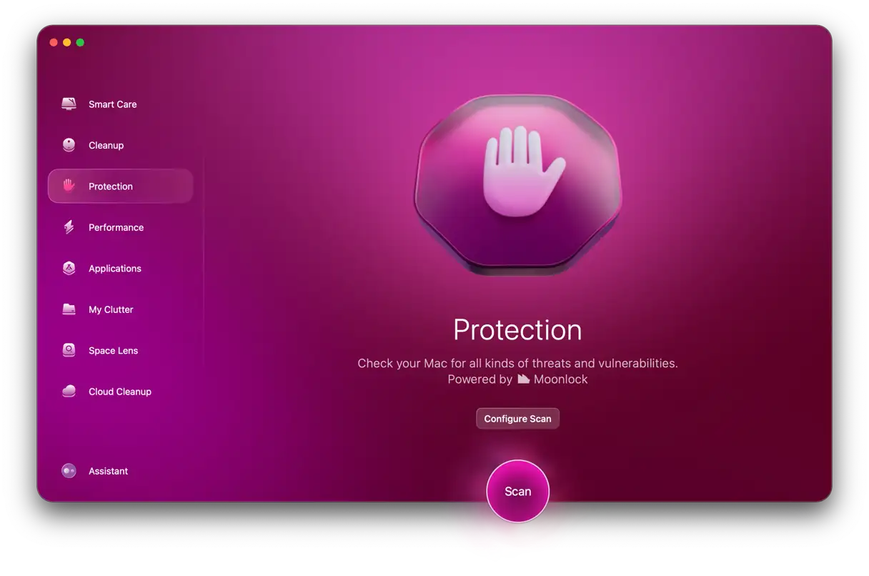 كما ذكرنا سابقًا، فإن أفضل طريقة للبقاء في صدارة التهديدات الفيروسية والبرامج الضارة هي استخدام أداة مكافحة الفيروسات بانتظام، مثل CleanMyMac، المدعوم بمحرك Moonlock Engine.