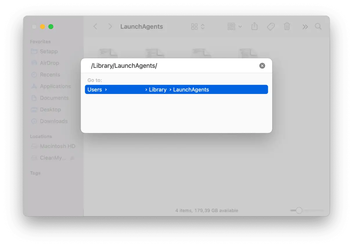 سترى المجلد الذي يحتوي على قائمة عوامل التشغيل (Launch Agents) بداخله.