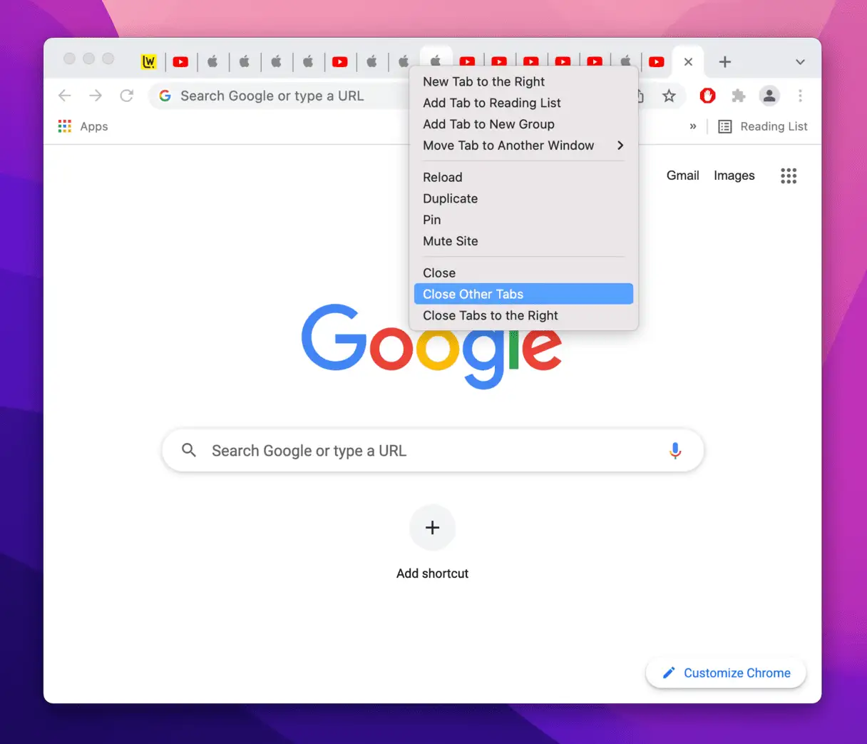 يُعدّ وجود عدد كبير من علامات تبويب المتصفح المفتوحة أحد الأسباب الأكثر شيوعًا لإجهاد جهاز Mac، خاصةً إذا كنت تستخدم متصفح Chrome. في المتوسط، تستهلك كل علامة تبويب حوالي 100 ميجابايت من الذاكرة (Memory)، ولكن عند تحميل تعليقات YouTube على سبيل المثال، يمكن أن يرتفع هذا الاستهلاك إلى 1 جيجابايت. تخيل ما سيحدث لجهاز Mac الخاص بك إذا كان لديك 10 أو 20 علامة تبويب مفتوحة في نفس الوقت.