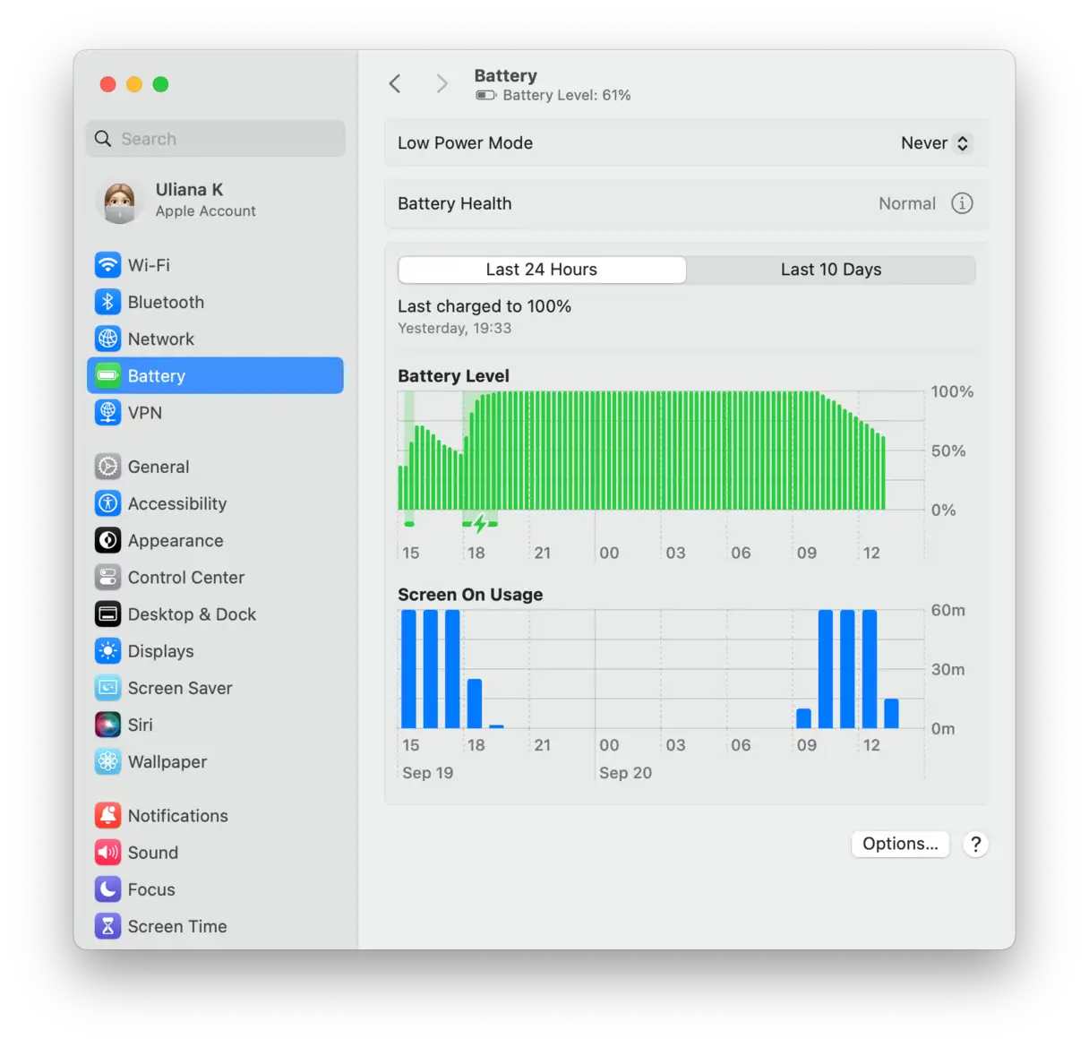 1. انتقل إلى “إعدادات النظام” (System Settings)، ثم اختر “البطارية” (Battery).