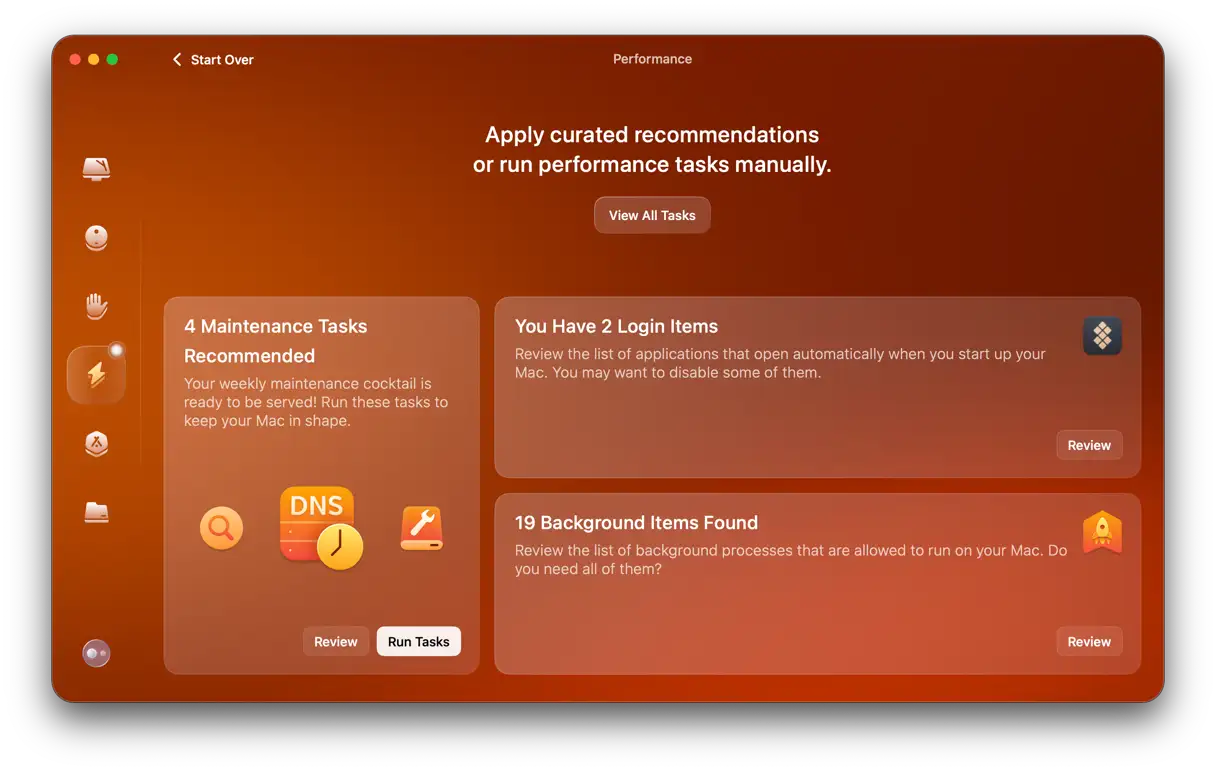 3. انقر فوق “تشغيل المهام” (Run Tasks). سيقوم التطبيق تلقائيًا بتنفيذ المهام الموصى بها لتحسين أداء جهاز Mac الخاص بك.