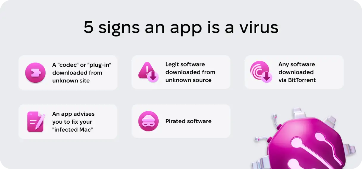تأتي الفيروسات والبرامج الضارة بأشكال وأحجام مختلفة. يظهر بعضها في صورة ملحقات للمتصفح، بينما يعمل البعض الآخر في الخلفية، لكن بعضها يظهر كتطبيقات في مجلد التطبيقات الخاص بك. قبل شرح كيفية فحص جهاز Mac بحثًا عن الفيروسات، تحقق من هذه العلامات الخمس التي تدل على أن التطبيق عبارة عن فيروس.