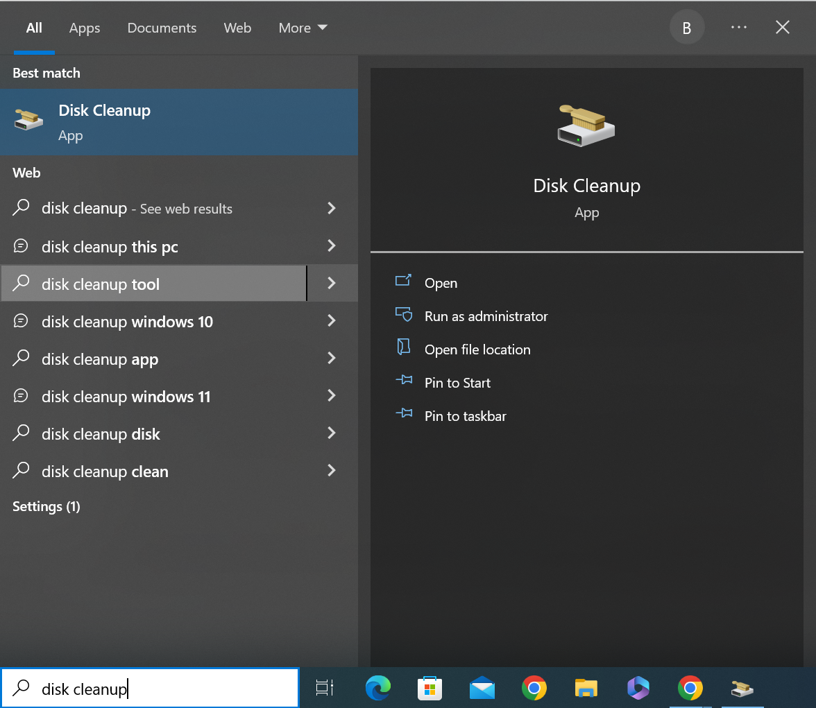 يمكن أن تستهلك ذاكرة التخزين المؤقت (الكاش) قدرًا كبيرًا من ذاكرة الوصول العشوائي (RAM) إذا كانت تُستخدم لعدة أنواع مختلفة من مهام الذاكرة. تُستخدم ذاكرة التخزين المؤقت لعرض صفحات الويب التي تمت مشاهدتها مسبقًا بسرعة دون الحاجة إلى جولة أخرى من تنزيل البيانات. أبسط طريقة للقيام بذلك هي بكتابة “Disk Cleanup” في شريط البحث والنقر على الخيار الأول.