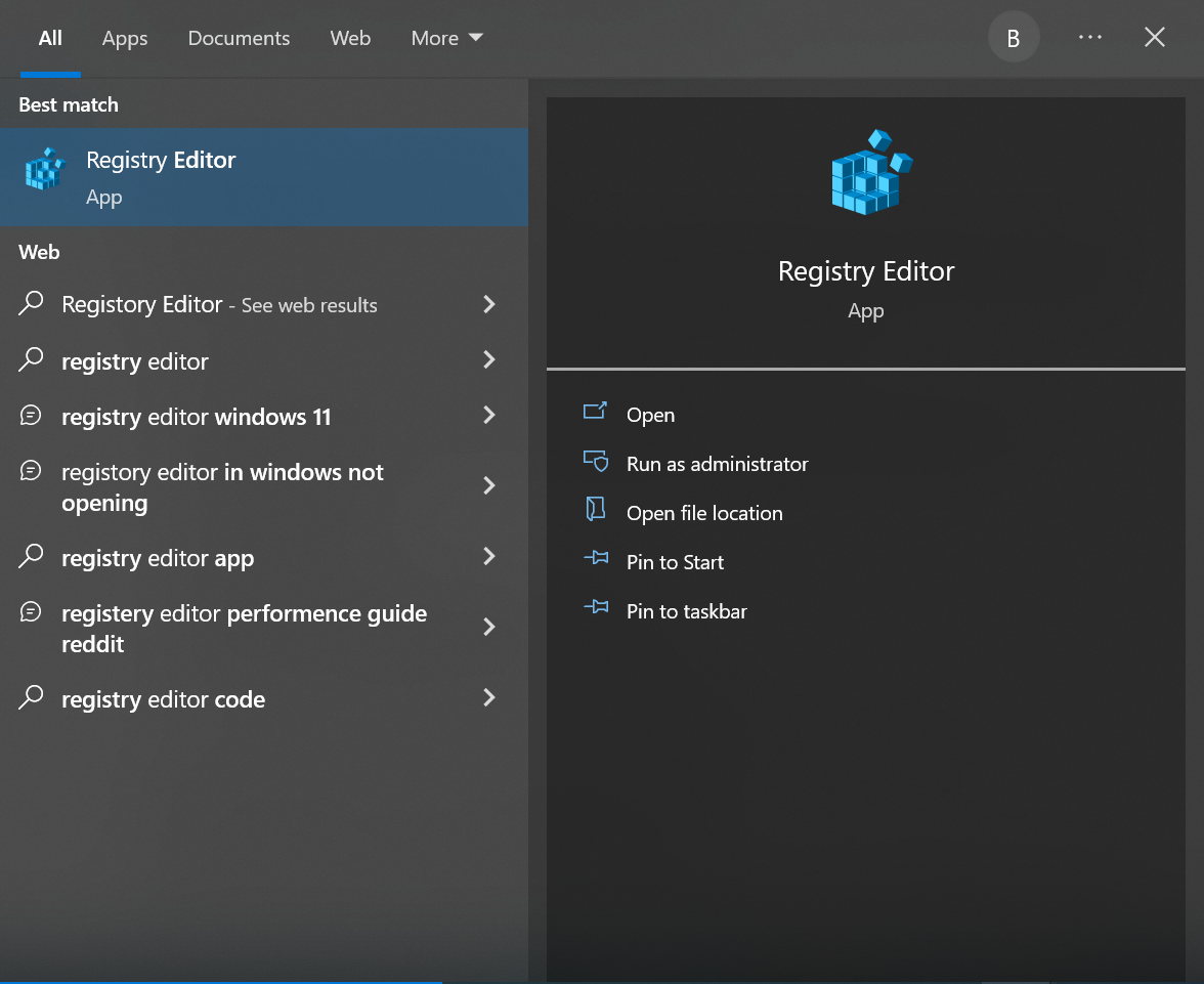 - أدخل “Registry Editor” في حقل بحث “Start“. أجب بـ “نعم” عندما يُطلب منك السماح لـ Registry Editor بإجراء تغييرات على جهازك.