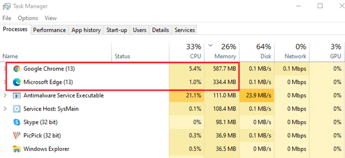 عندما يتعلق الأمر باستخدام الذاكرة، فإن Google Chrome في مستوى خاص به. إذا كنت تستخدم متصفحك كثيرًا، فقد ترغب في اختيار بديل لـ Chrome (مثل Microsoft Edge) يستهلك ذاكرة أقل. اطلع على قائمتنا لأفضل المتصفحات المتاحة اليوم، حتى للأجهزة منخفضة المواصفات.