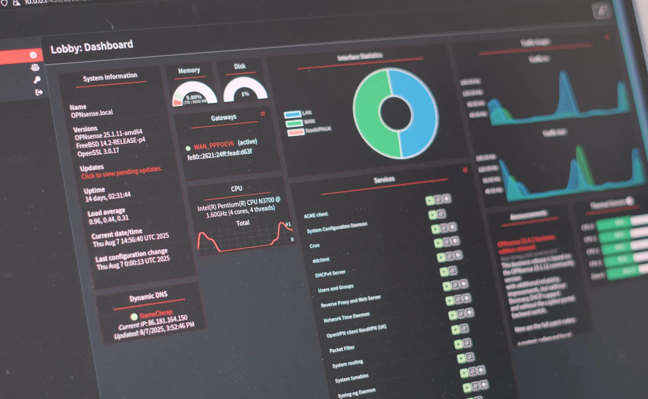 يتيح لك OPNsense تعيين قواعد جدار الحماية بناءً على الجهاز، والوقت من اليوم، والشبكة الفرعية، ونطاق IP، والخدمات المحددة التي تقوم بتشغيلها. إذا كنت تدير أي نوع من الخوادم المنزلية، فإن OPNsense يسمح لك بالتحكم بدقة في من يمكنه الوصول إلى الخدمات ومتى. هذا يعني تحكمًا كاملاً في أمان شبكتك المنزلية، وحماية بياناتك وأجهزتك من الوصول غير المصرح به. يمكنك على سبيل المثال، تقييد الوصول إلى خادم وسائط معين فقط للأجهزة الموجودة على شبكتك المحلية خلال ساعات معينة، أو حظر الوصول إلى خادم الألعاب من عناوين IP معينة.