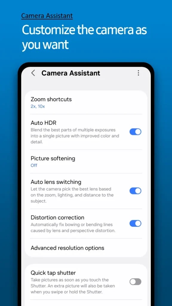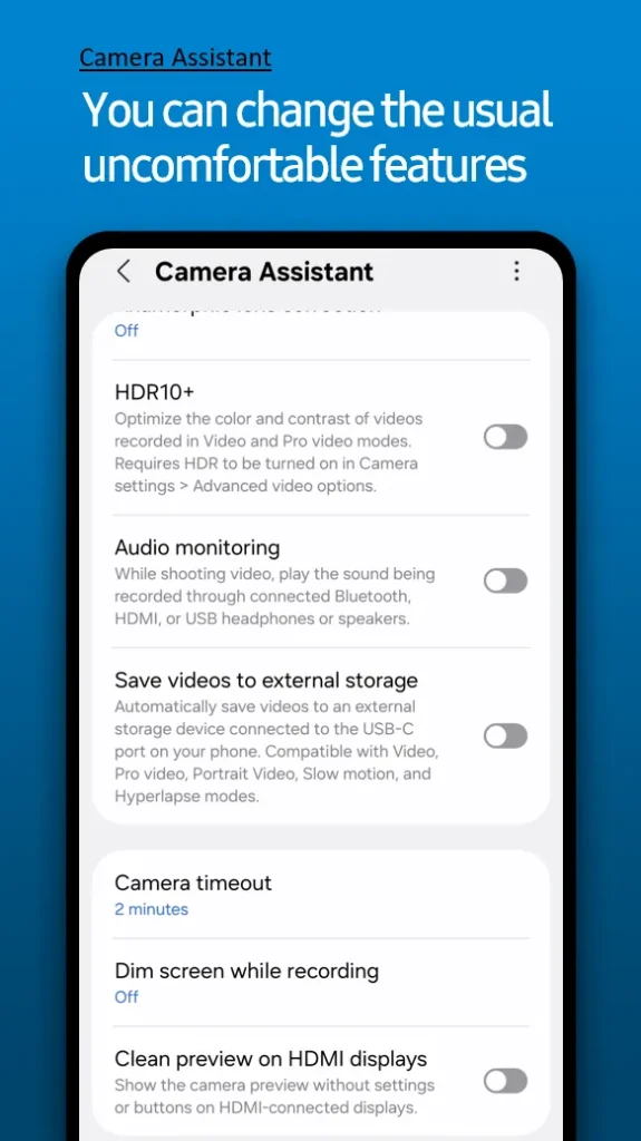 يأتي هنا دور Camera Assistant، وهو وحدة نمطية أساسية من Good Lock، لحل هذه المشكلات عن طريق إضافة خيارات تحكم متقدمة إلى إعدادات الكاميرا الافتراضية.