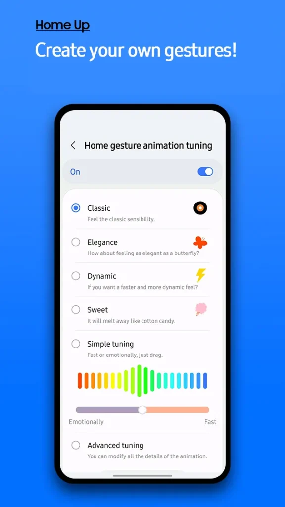 للمستخدمين المتقدمين، يوفر Home Up خيارات دقيقة لضبط حركات الإيماءات، وسلوك لوحة الحافة، وتخصيص انتقالات تشغيل التطبيقات، مما يتيح لك تجربة مستخدم مخصصة بالكامل.