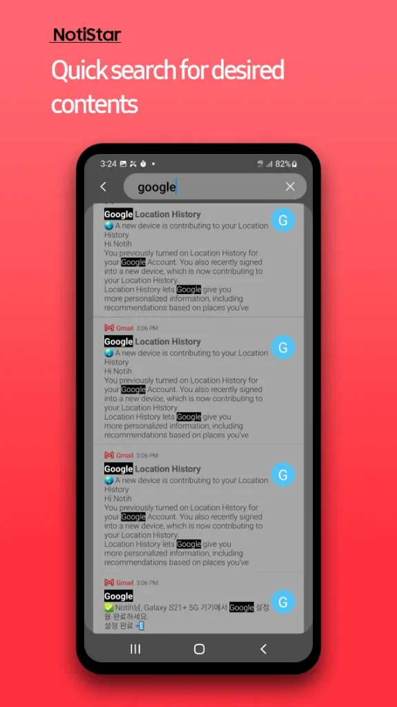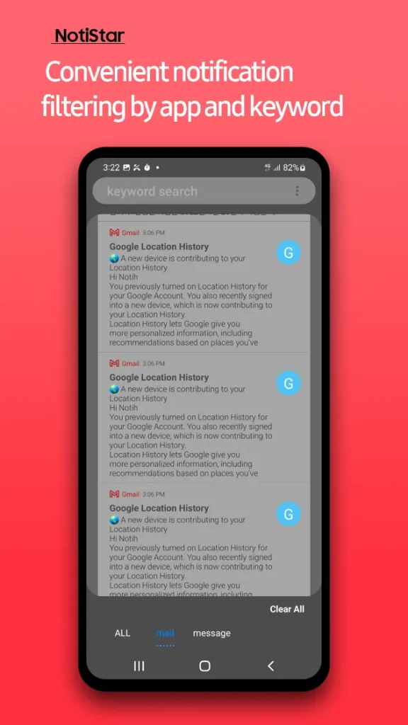 تطبيق NotiStar يقدم لك حلاً جذريًا لهذه المشكلة، حيث يقوم بتسجيل جميع إشعاراتك في أرشيف قابل للبحث، مما يوفر لك شبكة أمان موثوقة.