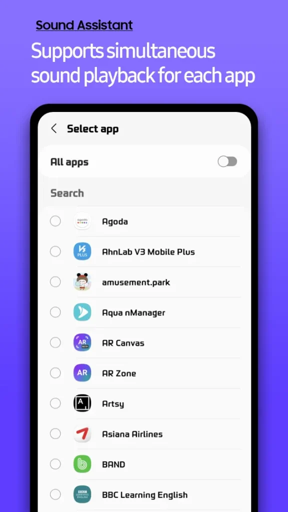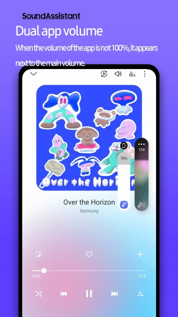 يقدم هذا التطبيق أشرطة تمرير منفصلة لكل تطبيق، مما يتيح لك ضبط مستويات الصوت بشكل فردي لكل تطبيق قيد التشغيل. كما يسمح بتقليل حجم الزيادة في مستوى الصوت إلى ما يصل إلى 150 مستوى لضبط دقيق للغاية. بالإضافة إلى ذلك، يمكنه توجيه الصوت حسب التطبيق، بحيث يتم إرسال صوت Spotify إلى جهاز Bluetooth بينما يبقى صوت تطبيق الخرائط على مكبر صوت الهاتف. باختصار، يوفر SoundAssistant تحكمًا متقدمًا ومرنًا في الصوت على أجهزة Samsung.