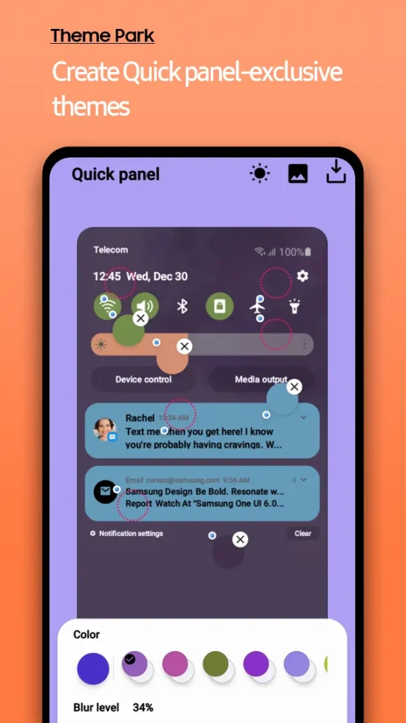 ابدأ باختيار خلفية الشاشة، ثم قم بتعديل الألوان الخاصة بالإشعارات وتطبيقات النظام. يمكنك أيضًا تخصيص الأيقونات عن طريق تغيير الأشكال والألوان أو تطبيق حزم أيقونات خارجية. يتيح لك Theme Park إمكانية تصميم واجهة Android الخاصة بك لتناسب ذوقك تمامًا.