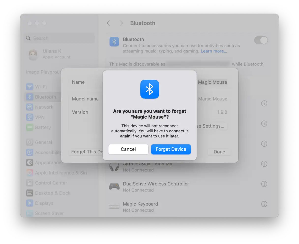 - قطع اتصال أجهزة Bluetooth: انتقل إلى إعدادات النظام (System Settings)، ثم اختر قسم Bluetooth. من هنا، قم بفصل جميع الأجهزة المتصلة حاليًا. هذه الخطوة ضرورية لتجنب أي تداخل محتمل أثناء عملية استكشاف الأخطاء وإصلاحها.