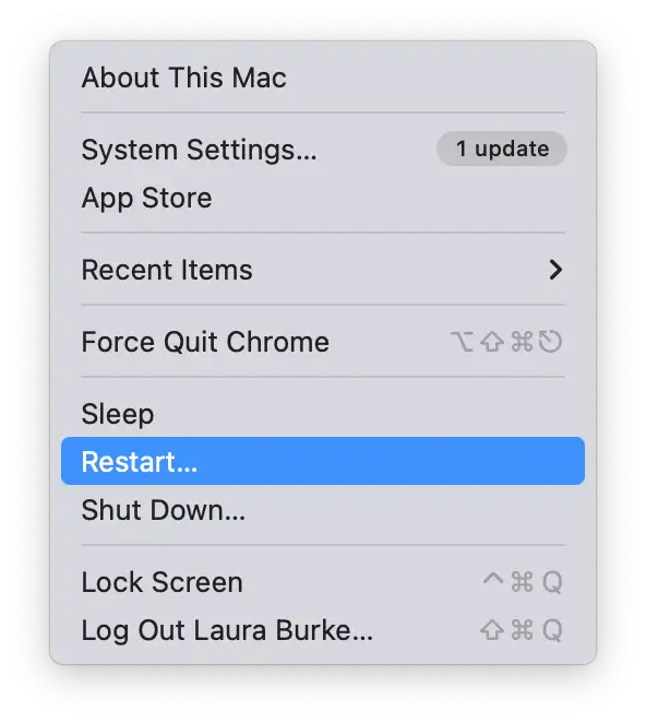 - دع جهاز Mac يعيد التشغيل بشكل طبيعي، وراقب عملية الإقلاع بعناية. انتبه لأي سلوك غير طبيعي أو رسائل خطأ تظهر.