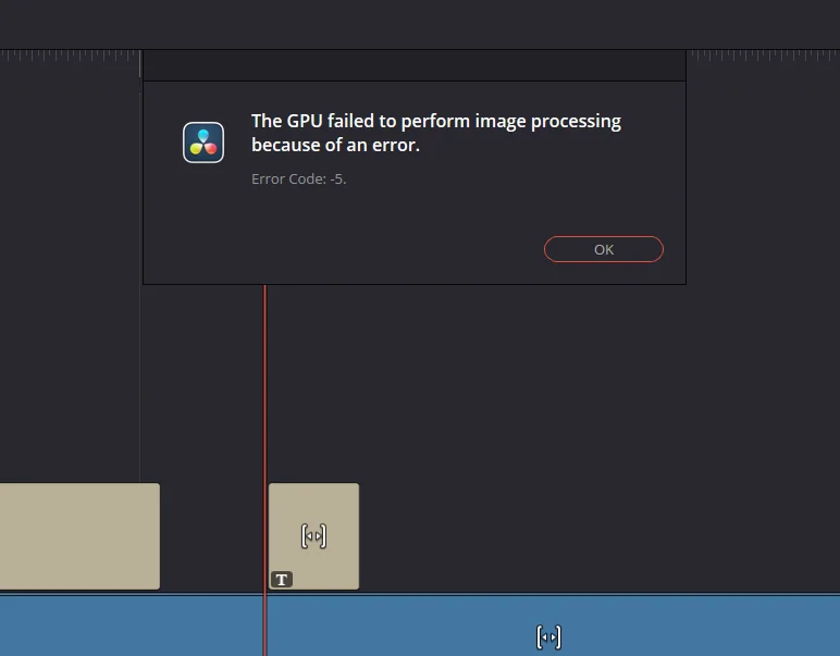 قد يتوقف برنامج DaVinci Resolve مع ظهور رسالة الخطأ: “فشلت وحدة معالجة الرسومات (GPU) في إجراء معالجة الصور بسبب وجود خطأ” (رمز الخطأ 5). يمكن أن يؤدي هذا إلى توقف التشغيل، أو منع عرض التأثيرات، أو فشل عمليات التصدير في منتصفها.