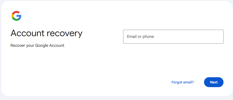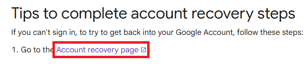- انتقل إلى خدمة Google الرسمية لـ استعادة الحساب.