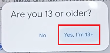 - انقر على “نعم، عمري 13 عامًا أو أكثر” عندما يُطلب منك ذلك.