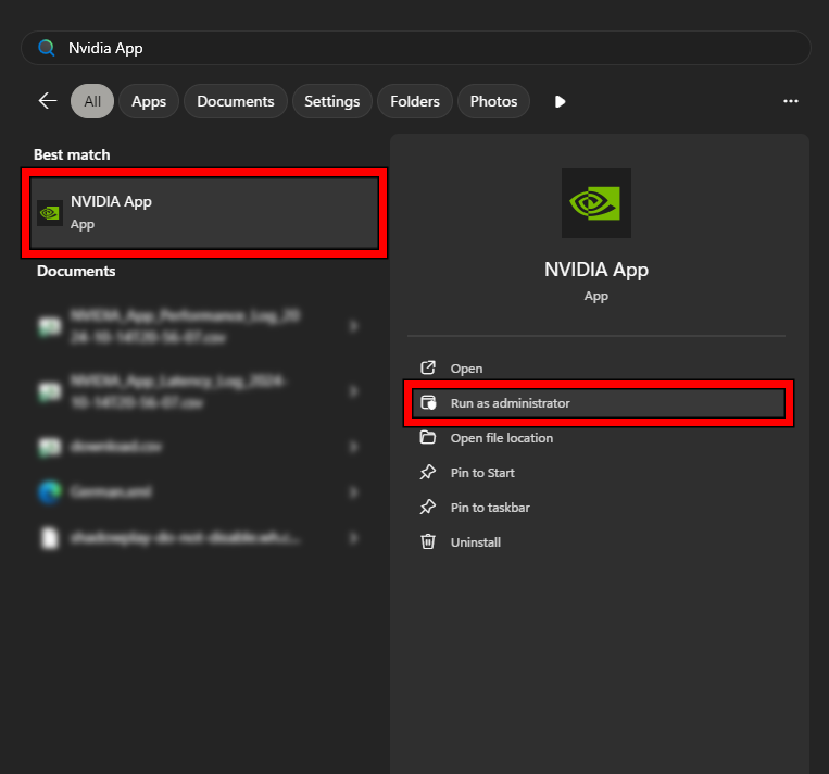 2. تشغيل NVIDIA App كمسؤول