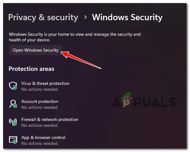 - انقر فوق Open Windows Security (فتح أمان Windows).