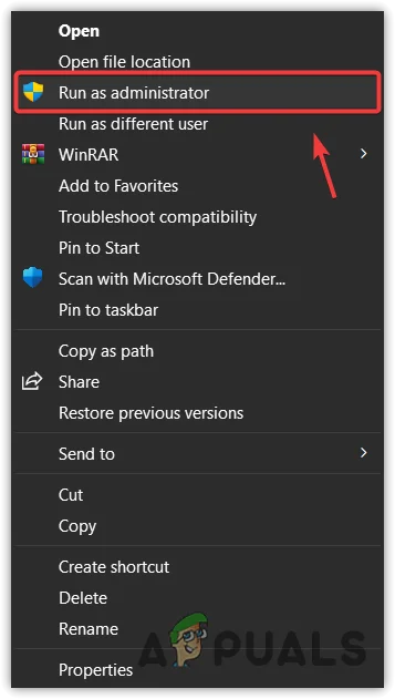 - انقر بزر الماوس الأيمن واختر تشغيل كمسؤول (Run as administrator).