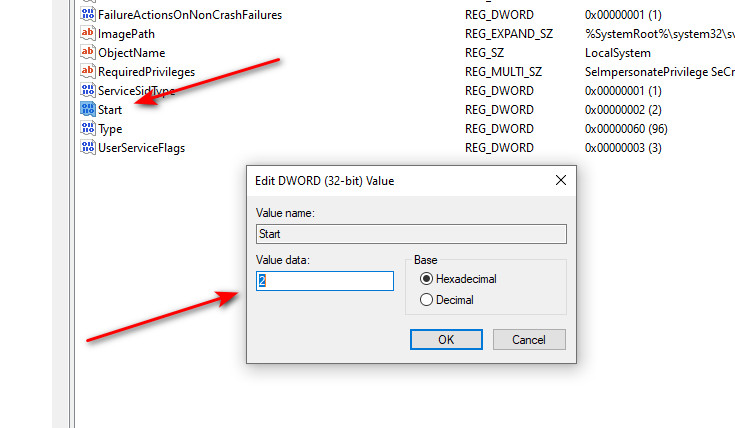 - انقر نقرًا مزدوجًا على Start، واضبطه على 2، وانقر فوق OK.