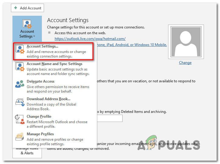 - بيانات مؤقتة معطوبة – إذا بدأت المشكلة بالظهور بعد انقطاع غير متوقع للجهاز أو بعد فحص بواسطة برنامج حماية (AV scan)، فمن المحتمل أن تتمكن من حل المشكلة ببساطة عن طريق إعادة إضافة حساب البريد الإلكتروني الذي يواجه مشكلة في Outlook لمسح أي بيانات مؤقتة.