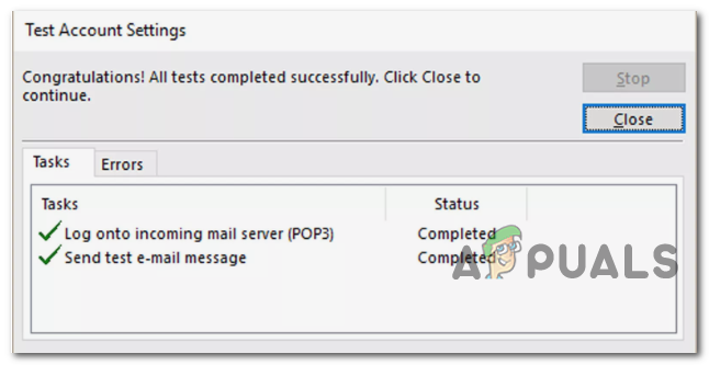 - إذا تلقيت رسالة نجاح، فقد تمكنت بنجاح من الاتصال بـ GMAIL POP والقضاء على الخطأ 0x800CCCDD.