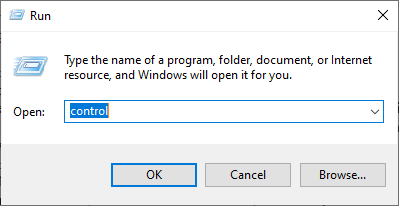 - بعد ذلك، اضغط على مفتاح Windows + R لفتح مربع حوار تشغيل. ثم اكتب ‘control.exe’ واضغط على Enter لفتح نافذة لوحة التحكم الكلاسيكية.