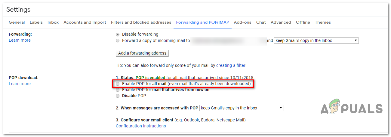 في حال كنت تواجه هذه المشكلة مع حساب Gmail ولم ينجح أي من الحلول المحتملة المذكورة أعلاه، يمكنك ببساطة التبديل إلى اتصال POP يدوي بدلاً من IMAP (بروتوكول الوصول إلى رسائل الإنترنت) والقضاء على الخطأ 0x800CCCDD.