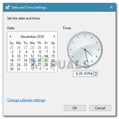 إذا كان هذا السيناريو ينطبق عليك، فيجب أن تكون قادرًا على إصلاح المشكلة عن طريق ضبط قيم التاريخ والوقت والمنطقة الزمنية لتتوافق مع القيم الصحيحة من قائمة إعدادات التاريخ والوقت. أكد العديد من المستخدمين المتأثرين أن هذه العملية سمحت لهم أخيرًا بحل المشكلة.