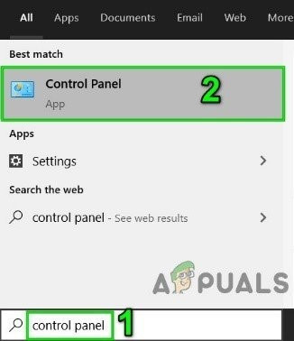 - انقر في مربع Windows Search واكتب Control Panel. ثم، في قائمة النتائج المعروضة، حدد Control Panel.