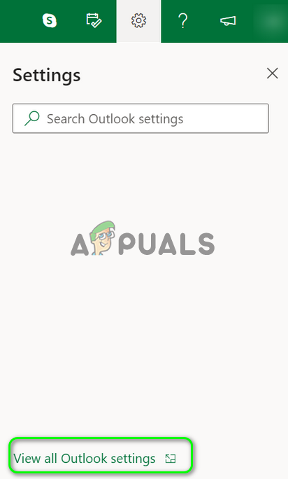 - الآن، بالقرب من الجزء العلوي الأيمن من النافذة، انقر على أيقونة الإعدادات (الترس) ثم انقر على عرض جميع إعدادات Outlook.