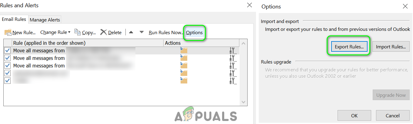 - إذا كان الأمر كذلك، فاستورد القواعد وتحقق مما إذا كان Outlook يعمل بشكل صحيح.
