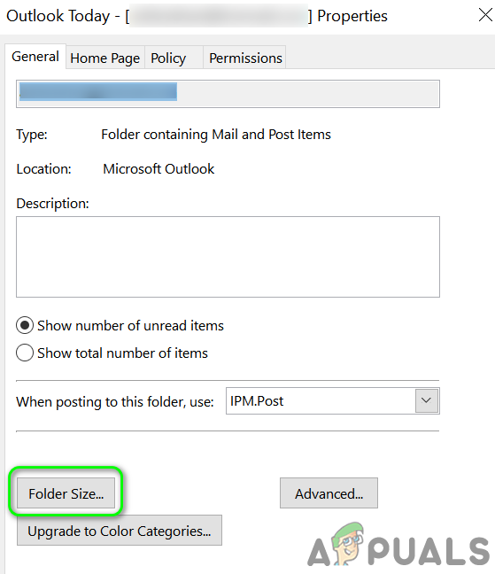 - الآن، حدد خصائص ملف البيانات وانقر على زر حجم المجلد.