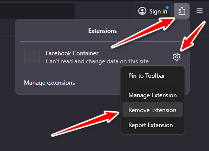 1. إذا كنت تستخدم Facebook Container، فافتح الإضافات.