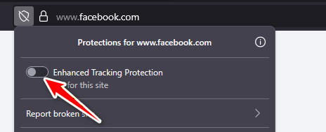 يمكن لـ Firefox الحماية المحسّنة من التتبع أو Facebook Container حظر ملفات تعريف الارتباط/النصوص البرمجية التي يحتاجها Facebook لتحميل أو مصادقة صفحات معينة. عطّلها لـ Facebook فقط واختبر.