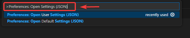 - ابحث عن Preferences: Open Settings (JSON) وحددها.
