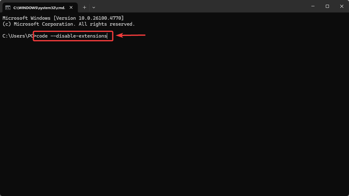 - إذا تم فتح VS Code بنجاح، فإن إحدى إضافاتك هي السبب. أعد تمكينها واحدة تلو الأخرى للعثور على الإضافة المعيبة.