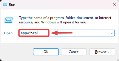 - اضغط على Win + R، واكتب appwiz.cpl، ثم اضغط على Enter.